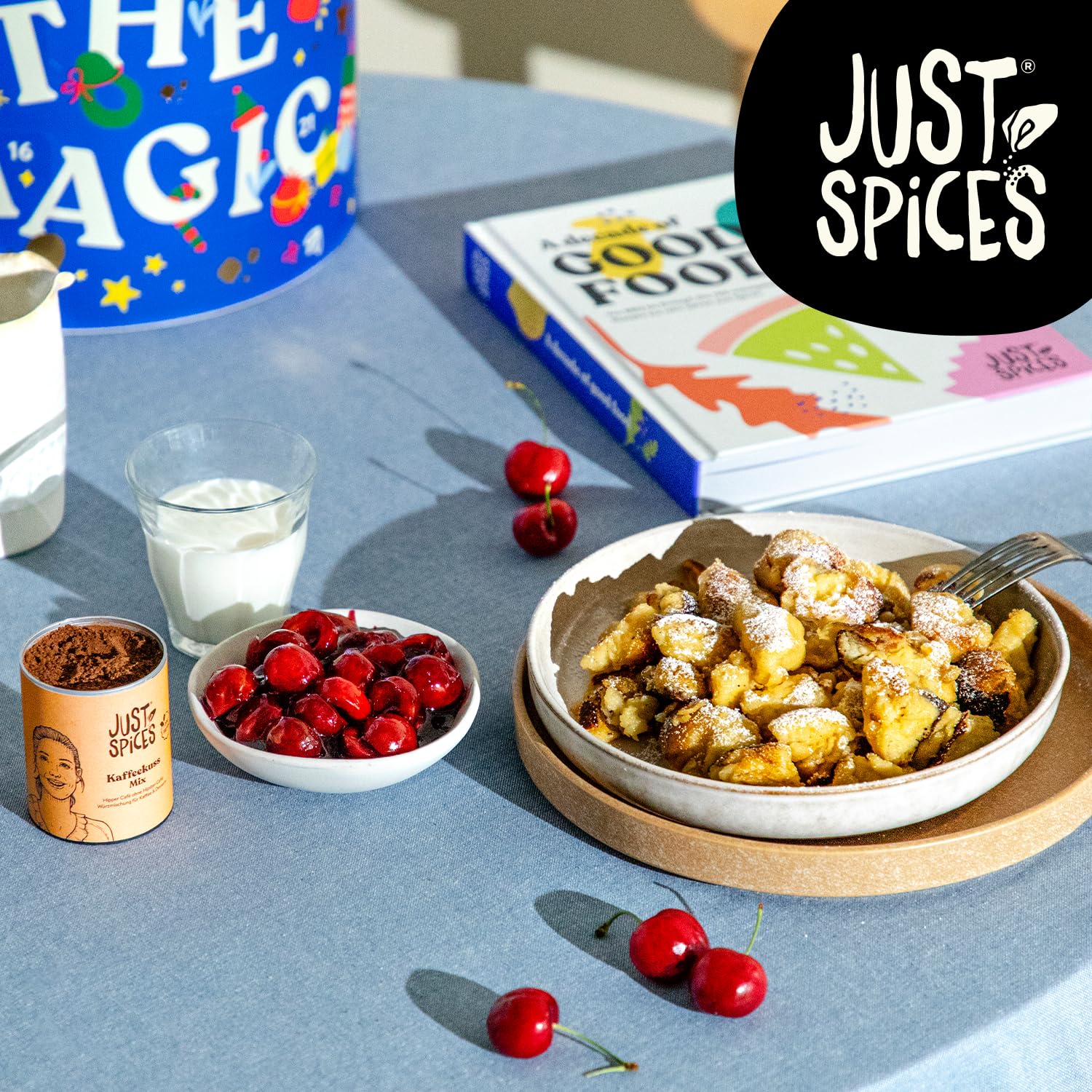 Hinter jedem Türchen verbirgt sich ein saisonales Online-Rezept, das direkt zum Ausprobieren einlädt. Das enthaltene Kochbuch mit über 100 Rezepten aus 10 Jahren Just Spices sorgt für noch mehr Ideen und lässt dich neue Lieblingsgerichte entdecken.